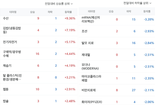 바이오, 조선 등 대부분 하락세
