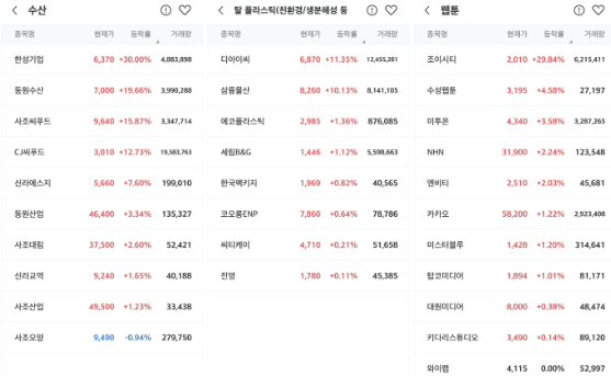 <수산 탈플라스틱 웹툰 관련주 강세>