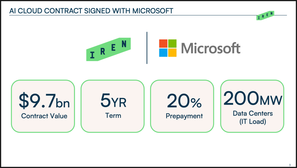 이렇게 철저한 검증을 통과했음에도, IREN은 다른 경쟁사와 달리 마이크로소프트에 지분을 제공하지 않았습니다. 워런트나 미래 확장 옵션 같은 혜택도 제공하지 않았습니다. 오직 서비스 가치만으로 계약을 따낸 셈입니다.