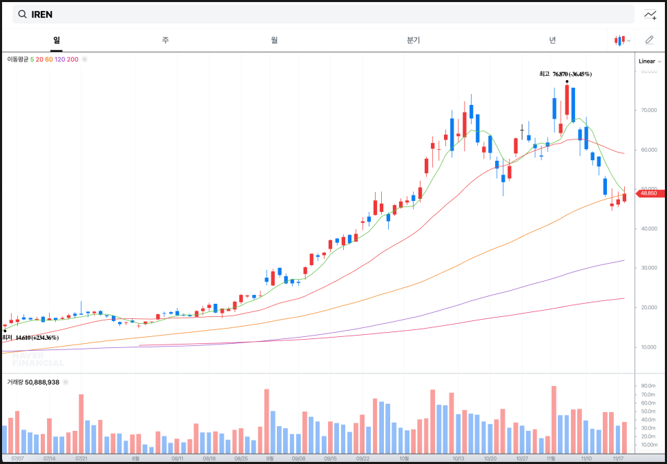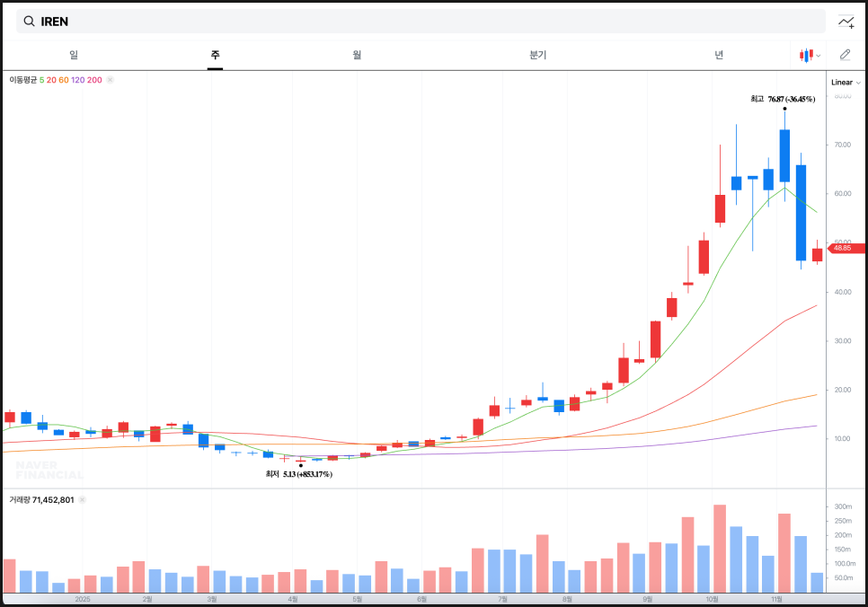 2025년 11월 19일에 다룰 종목은 바로 아이렌(IREN)입니다.