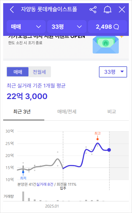 그렇게 무자비로 구역이 해지되고 구의자양뉴타운은 현재 살아남은 곳은 4개 밖에 없다. 그 중 최근 분양한 곳이 롯데캐슬 이스트폴이다. 현재는 33평이 22억의 시세를 찍고 바로 옆 강변역센트럴아이파크도 분양가가 12억 후반이지만 바로 옆 시세를 따라가고 있다. 자양1동~4동까지의 아파트를 보면 20년도 이후 지어진 신축이 매우 드물다. 그렇기에 재건축/재개발의 기회가 있는 땅이고 자양한양 역시 재건축의 수혜를 받을 수 있는 곳이다. 현재는 안전진단 통과 상태이다.