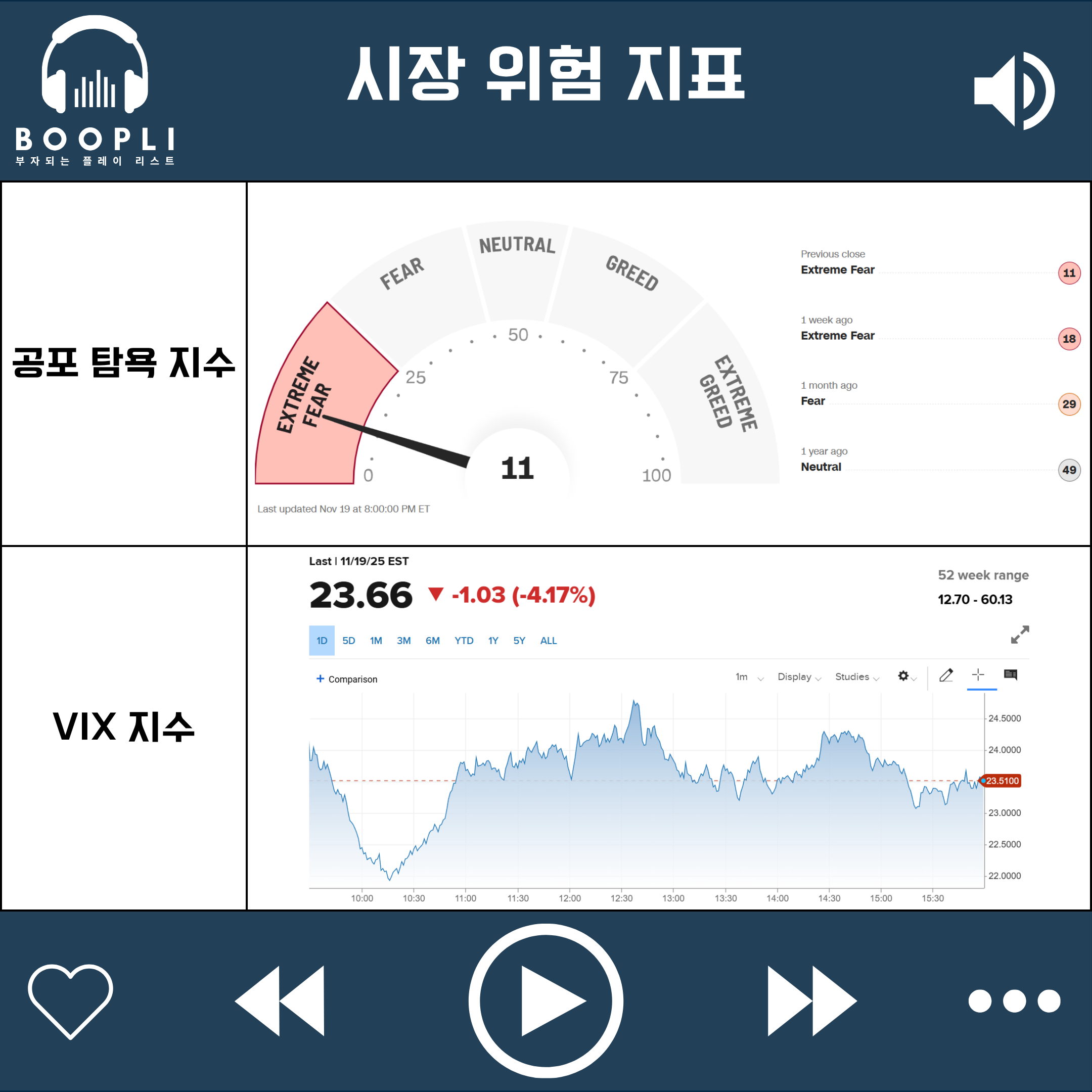 공포 탐욕 지수는 큰 변동 없이 극도의 공포(Extreme Fear) 단계 유지