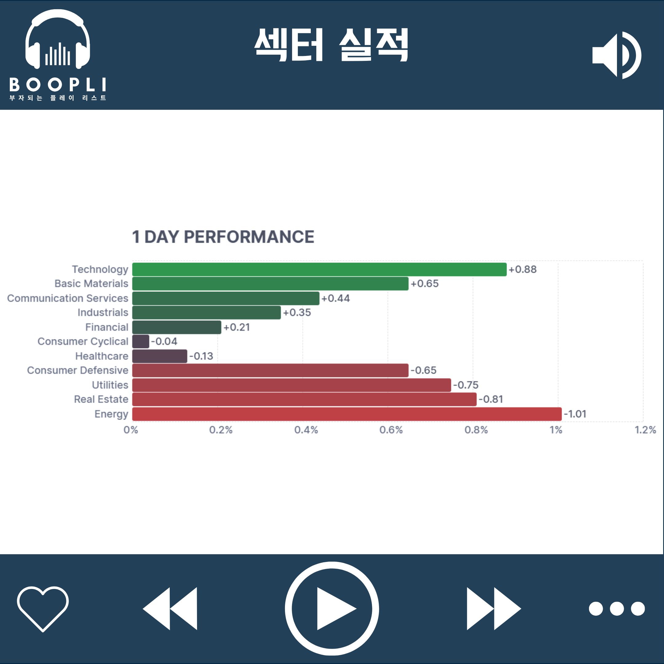 커뮤니케이션 서비스, 산업재, 금융 섹터는 강보합, 헬스케어, 소비 순환재는 약보합 마감
