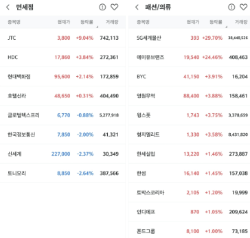 <면세점 의류 관련주 강세>