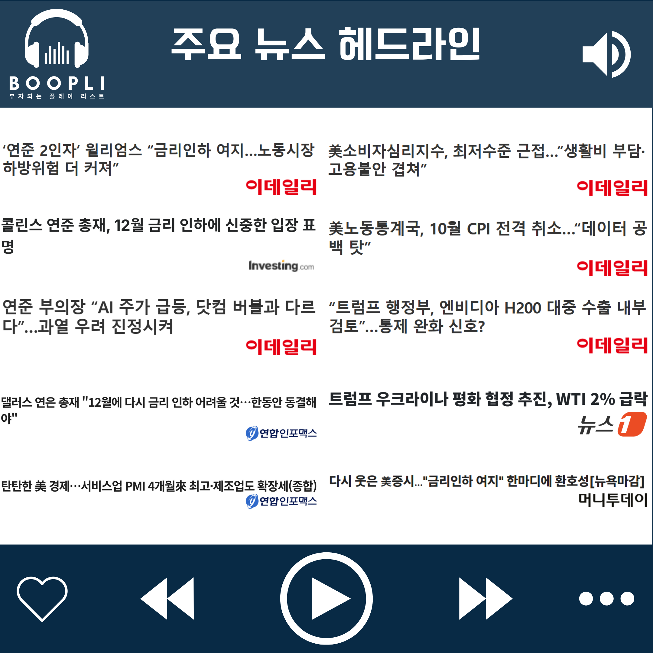 다만 연준 지도부의 발언이 명확히 금리 인하 가능성을 시사했다는 점에서, “12월 FOMC 전까지는 완화적 기대가 시장 하방을 일정 부분 방어할 것”이라는 의견이 우세