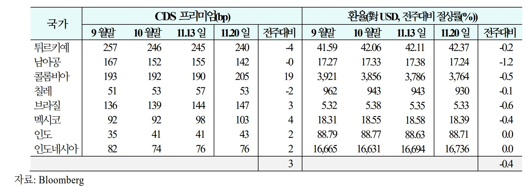03. 주간 신흥국 CDS 및 환율 동향('25.11.14 (금) ~ 11.20 (목))