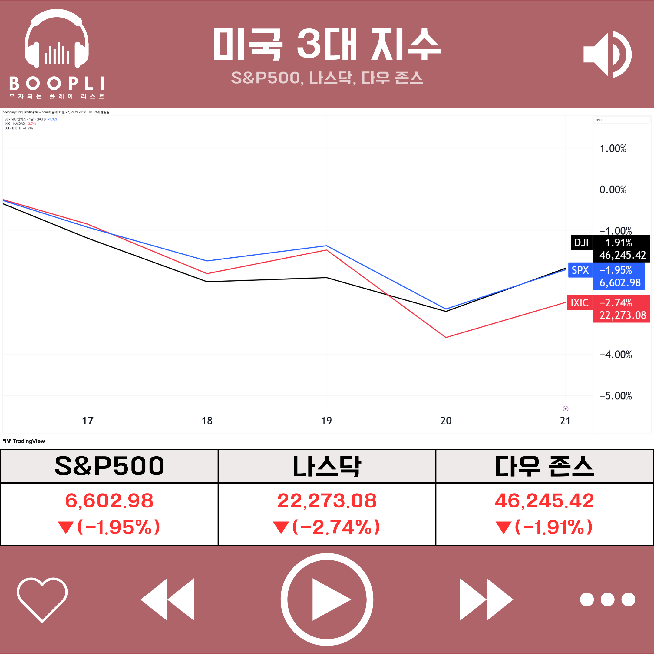주 중반에는 엔비디아 실적 발표를 앞두고 기대감이 유입되며 일시 반등하기도 했으나, 10월 고용보고서 미발표로 금리 경로 불확실성이 커지고 리사 쿡 연준 이사가 자산 가격 하락을 경고하자 증시는 다시 큰 폭의 조정을 겪었다.