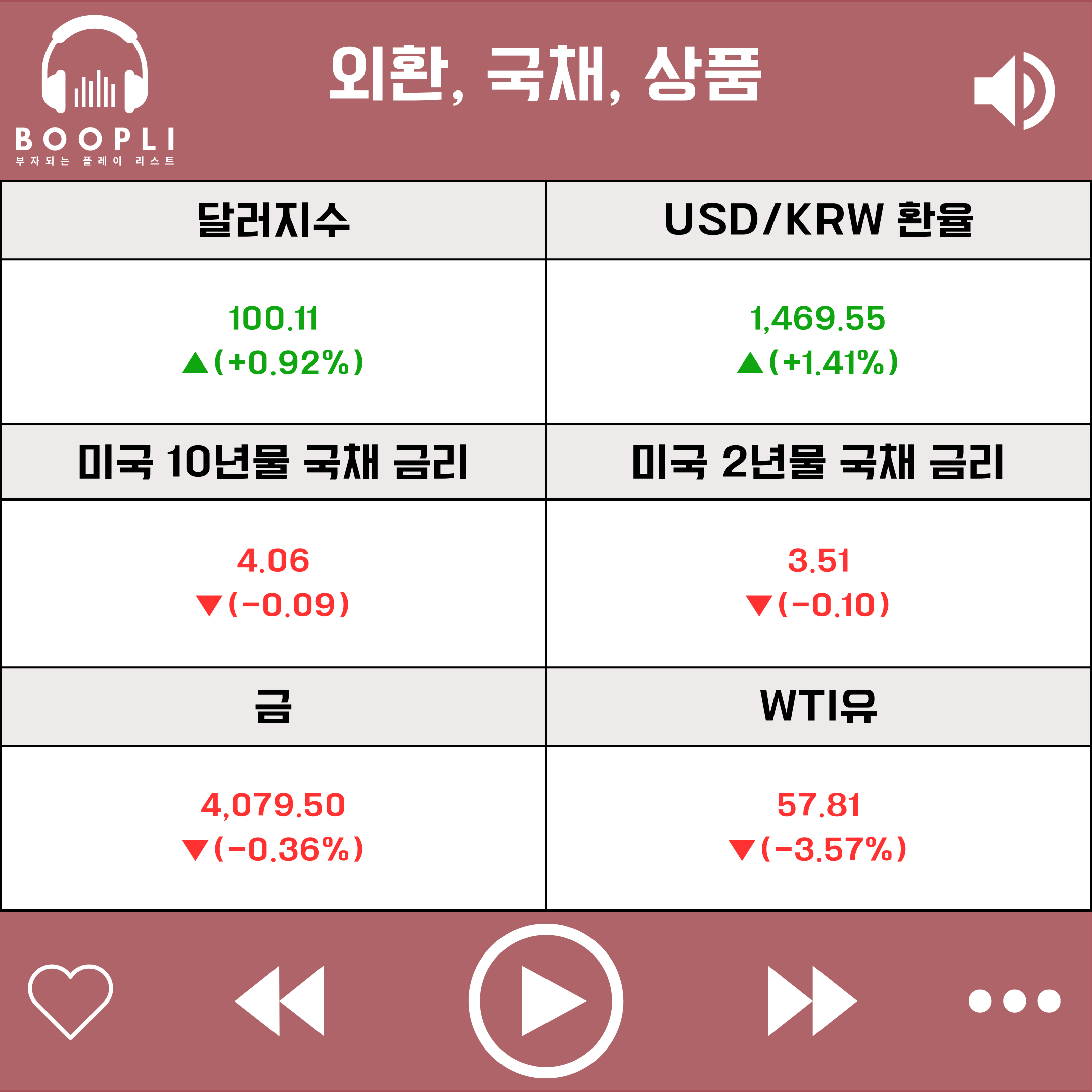 민간 ADP 주간 고용이 -2,500명을 기록하며 최근 고용 둔화 흐름을 재확인한 가운데, 미시간대 소비자심리지수는 51.0으로 견조한 수준을 유지했고 기대 인플레이션(1년 4.5%, 5년 3.4%)이 예상치를 하회하며 금리 인하 기대를 일부 지지했다.