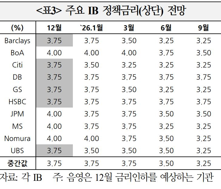 * 10개 IB 중 6곳은 12월 금리인하, 4곳은 금리동결 예상