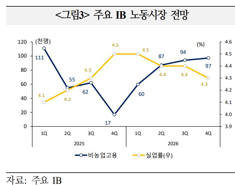 - 임금상승률의 하락은 전월수치 상향조정, 달력효과 등에 기인했으며 상대적 저임금 직종에서의 고용 확대 영향을 조정한 상승률은 0.33%(전년동월비 3.91%)로 추정(UBS)