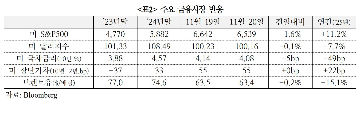 ㅇ 연방기금금리 선물시장이 반영하는 12월 금리인하 확률은 11.19일29.3%에서 11.20일 34.9%로 상승