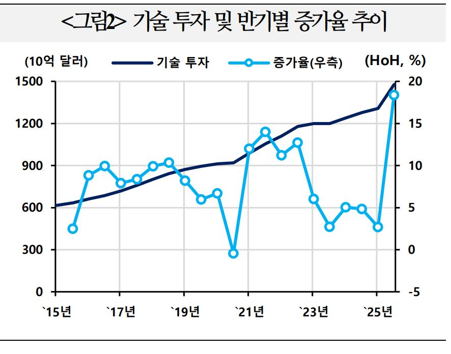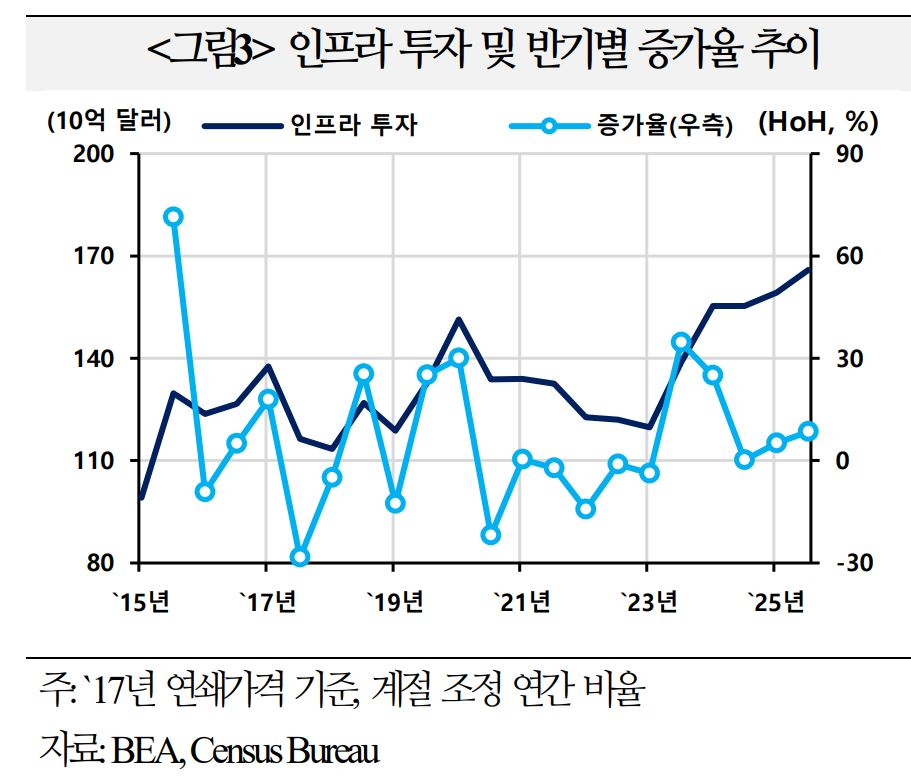 - 이는 상반기 민간 고정투자 증가분(명복 2,120억 달러, 전년비)의 약 34%를 차지하는 수준으로, 미국 내 투자 확대 흐름에 상당 부분 기여한 것으로 추정