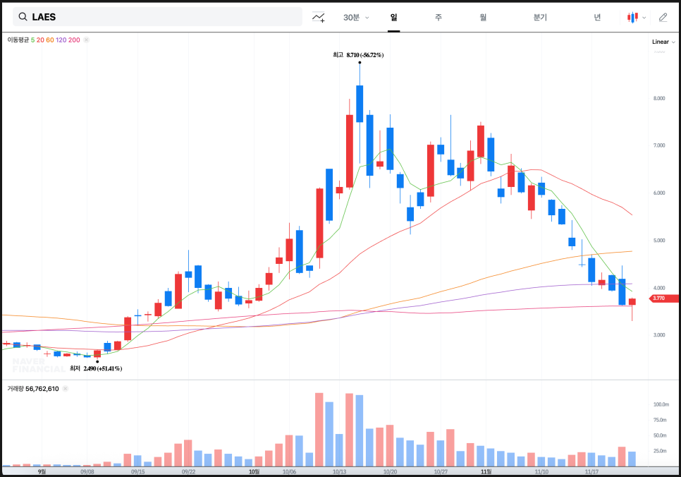 실스크(LAES) 주가 차트 분석