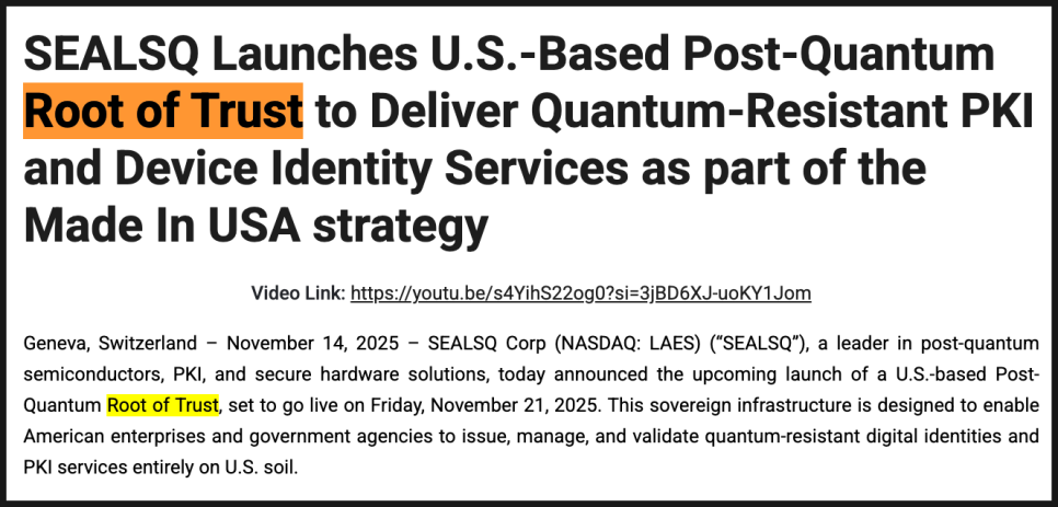 또 실스크는 미국 기반 포스트 양자 루트 오브 트러스트(Root of Trust) 서비스를 공개했습니다. 여기서 루트 오브 트러스트라는 건 어떤 장치나 서비스가 스스로를 증명할 때, 가장 먼저 확인을 맡기는 ‘최초의 신뢰 기관’ 같은 건데요.