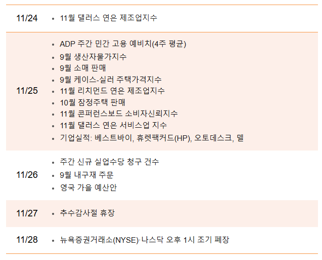 25일 발표 지표: ADP 민간고용, 9월 PPI, 9월 소매판매, 11월 소비자신뢰지수