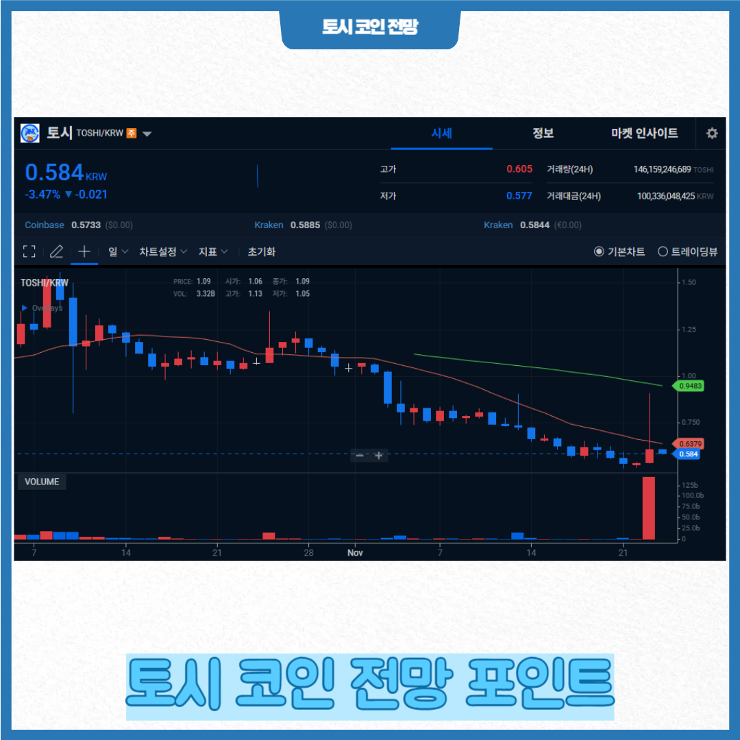 토시는 ‘커뮤니티 결집력’이 강한 편이라 밈 시장 변동에 따라 상승 모멘텀을 만들기 쉬운 구조입니다.