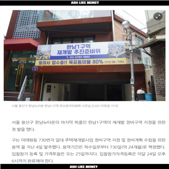 하지만 긴 시간이 필요하기에 시간과 자금이 많이 들어갈 수 있는데, 북아현 뉴타운이 대표적이다. 재개발은 어떤 지역의 명확한 개발 명분과 가능성, 추후 결과물과 정부정책까지 함께 생각해야 해서 어렵긴 하지만 엄청난 수익을 준다. 오늘은 용산 이태원동 730(한남1구역) 신통기획 후보지 사업성 분석입니다.