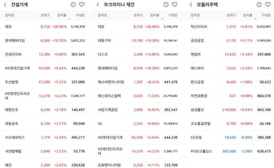 건설기계, 우크라재건, 네옴시티, 공작기계, 주택