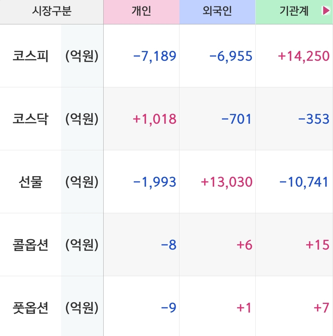 외인 오랜만에 선물 대량 매수와 콜 매수로