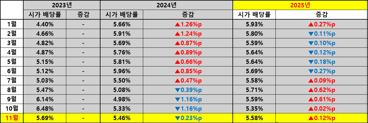 저는 이런 특징이 배당 중심 포트폴리오의 핵심 가치라고 생각합니다. 배당금이 꾸준히 늘고 시가 배당률이 안정적으로 유지되는 상황에서 장기적으로 재투자 효과가 쌓인다면 배당 수익의 체감 폭은 시간이 지날수록 분명하게 드러나기 때문입니다. 급격한 성장보다 완만하게 진행되는 장기 복리 구조를 중요하게 보시는 분들에게는 여전히 의미 있는 선택지라고 느껴졌습니다.