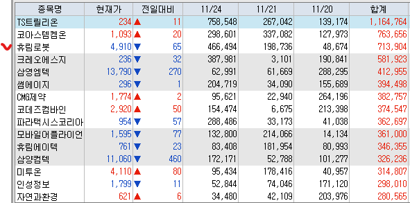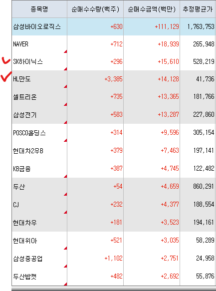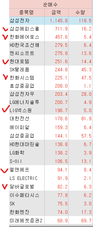 매도 : SK하이닉스 POSCO홀딩스 삼성전자우 현대모비스 한국전력 삼성증권 파라다이스 엔씨소프트 우리기술 HD현대인프라코어 LG화학 HD현대마린엔진 LIG넥스원 전진건설로봇 갤럭시아머니트리 스맥(상한가) 선익시스템