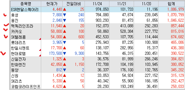 매수 : 맥쿼리인프라 삼성SDI 이노와이어리스 제이알글로벌리츠 현대로템 한화시스템 LIG넥스원 엘앤에프 달바글로벌 에코프로 카카오 휴림로봇 HL만도
