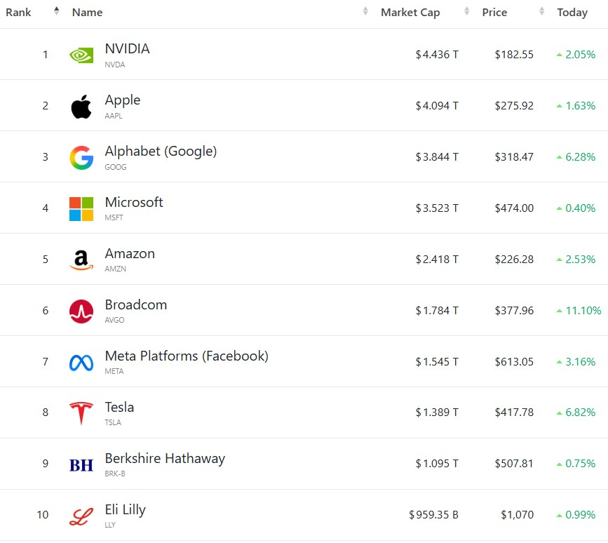 ● 구글 모회사 알파벳 주가는 6.3% 급등했다. 회사가 지난주 차세대 AI 모델 '제미나이 3'를 공개하면서 AI 경쟁력 강화 기대가 반영된 것으로 풀이된다.