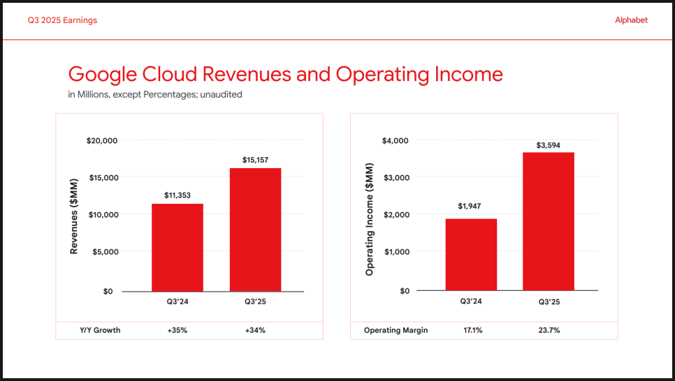 특히 구글 클라우드(Google Cloud)가 눈에 띄게 성장하면서 회사의 새로운 동력으로 자리 잡았습니다. 구글 클라우드의 매출은 전년 대비 30퍼센트 넘게 늘었고, 미래 매출을 의미하는 클라우드 백로그(backlog)는 무려 1,550억 달러에 달하게 됐습니다. 이 백로그의 상당 부분이 AI 업무입니다.