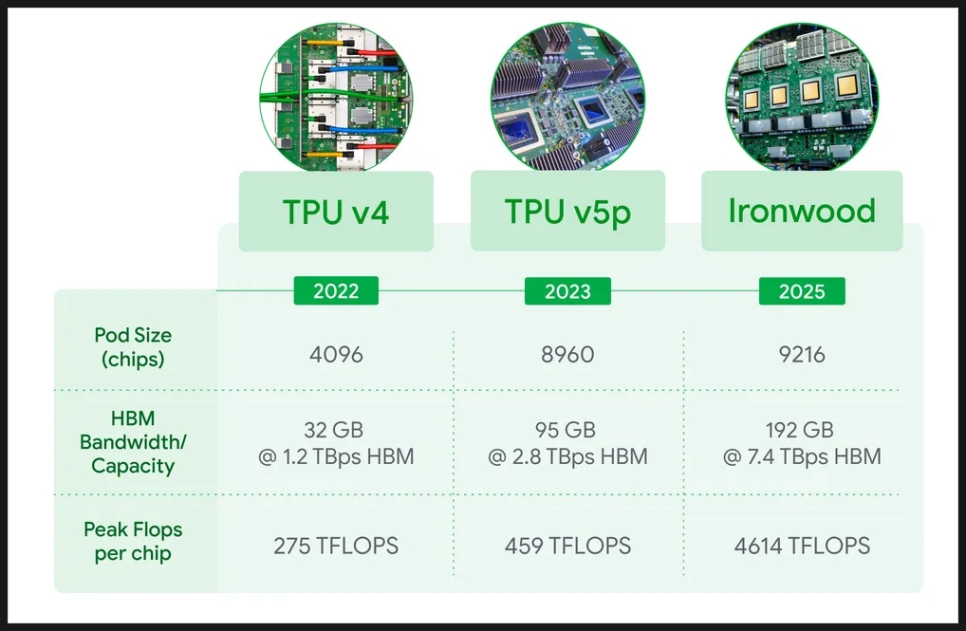 그뿐만 아니라 차세대 7세대 TPU인 아이언우드(Ironwood)를 준비 중인데, 구글이 자체 설계한 AI 반도체 칩으로 대규모 AI 연산을 더 빠르고 효율적으로 처리하기 위한 인프라 핵심으로 알려져 있습니다.
