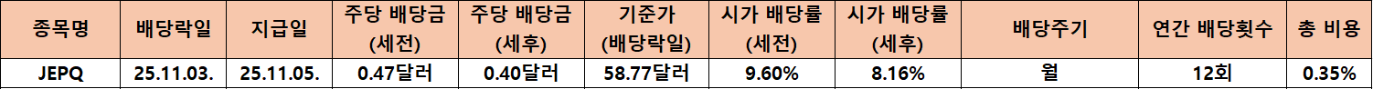 오늘은 미국 월배당 ETF인 JEPQ의 최신 배당 정보와 시가 배당률 흐름을 중심으로 인컴 투자 관점에서 얼마나 매력적인지 정리해 보려고 합니다.