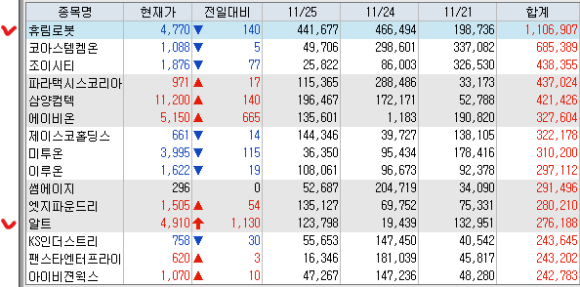 알트 : 구글 제미나이 3.0 호평 및 엔비디아의 AI거품론 반박 서한 발송 소식 등에 엔비디아 관련주, 로봇 관련주로 부각