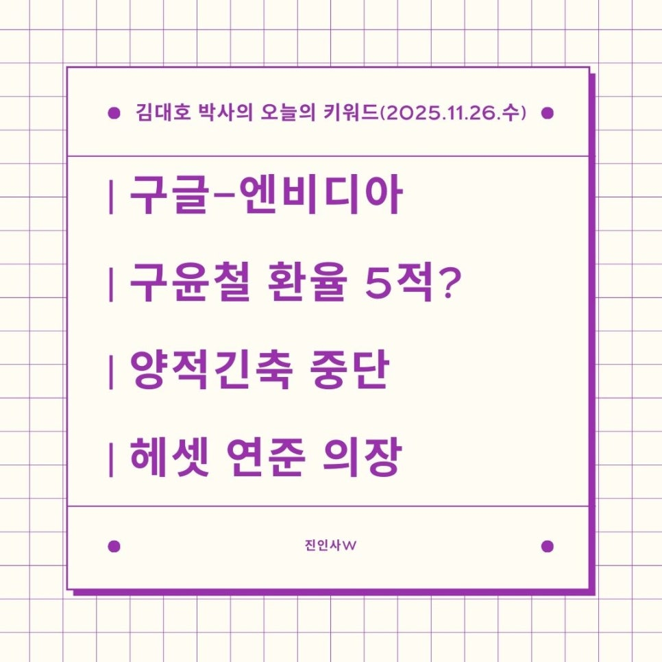 #김대호박사의오늘의키워드 #sbsbiz채널 #경제흐름읽기 #시간은소중히쓰자 #주식투자 #부동산투자 #진인사대천명 #구글엔비디아 #구윤철환율5적 #양적긴축중단 #헤셋연준의장