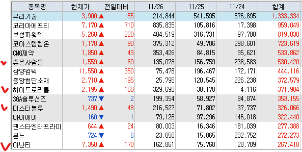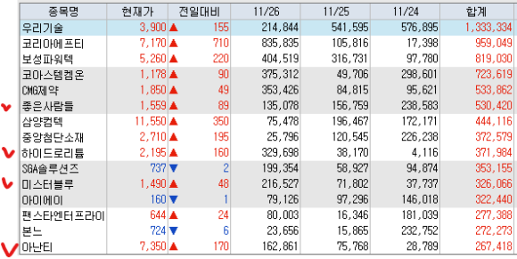 12월 기준금리 인하 가능성이 높아지자 성장주 성격의 바이오주가 강세(한올바이오파마 +9.96%, SK바이오팜 +9.92%, 리가겜바이오 +7.98%)