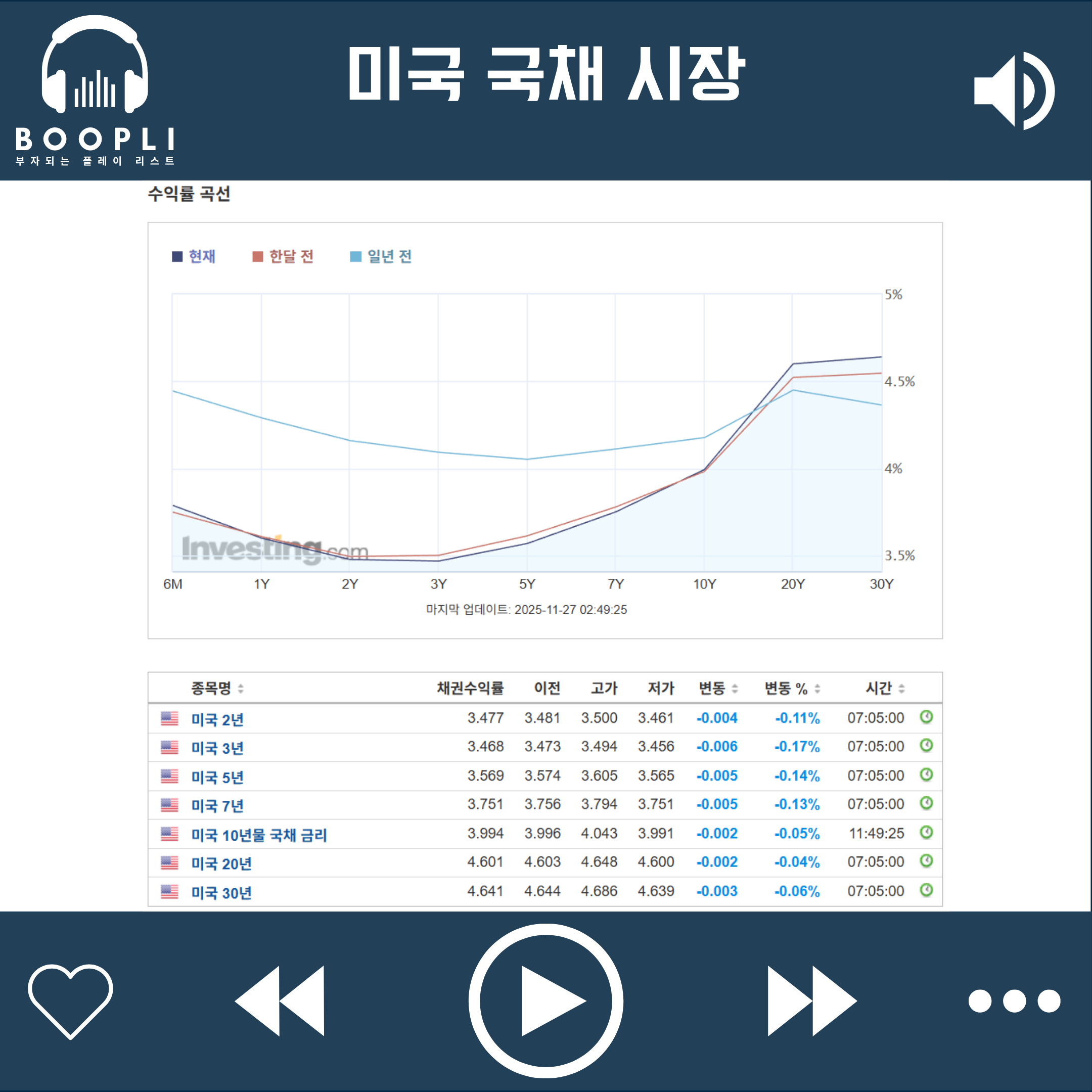 경기 둔화 우려가 오히려 금리 인하 기대감으로 연결되고, 델과 엔비디아를 통해 AI 인프라 투자가 실질적인 기업 실적으로 확인되면서, 시장은 'AI 거품론'을 뒤로하고 연말 산타 랠리를 향한 기대감을 한층 높임