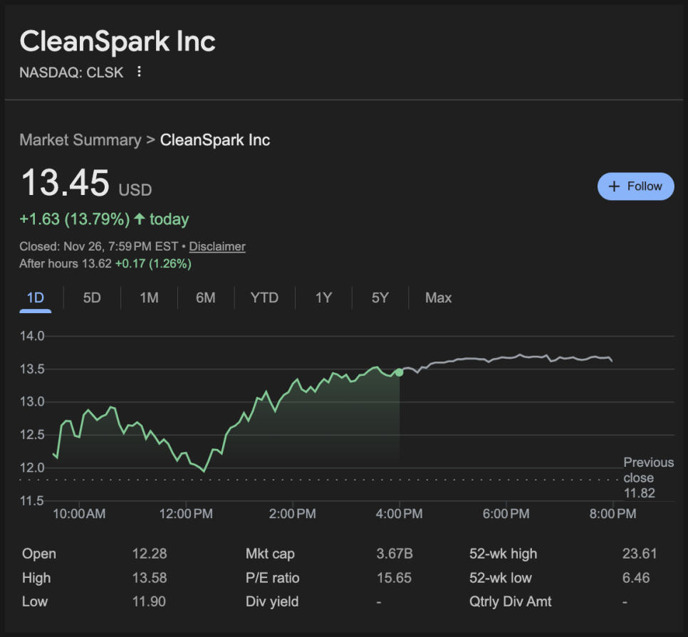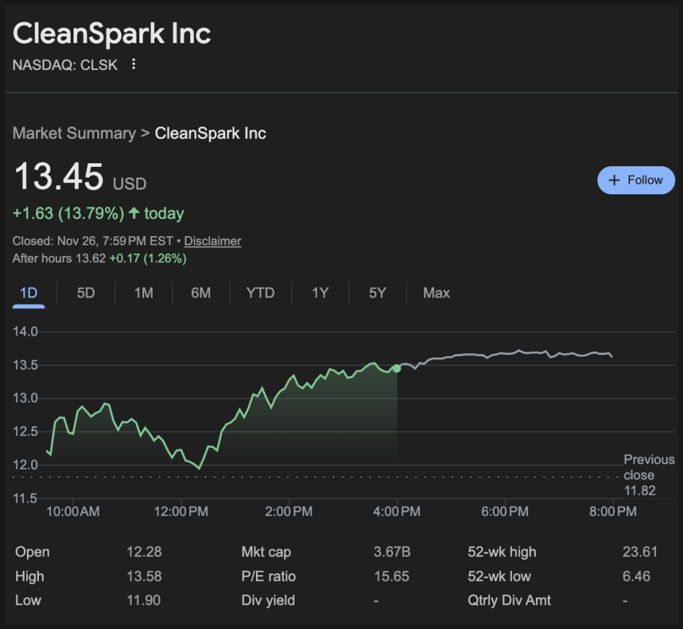 클린스파크(CLSK) 주가 차트