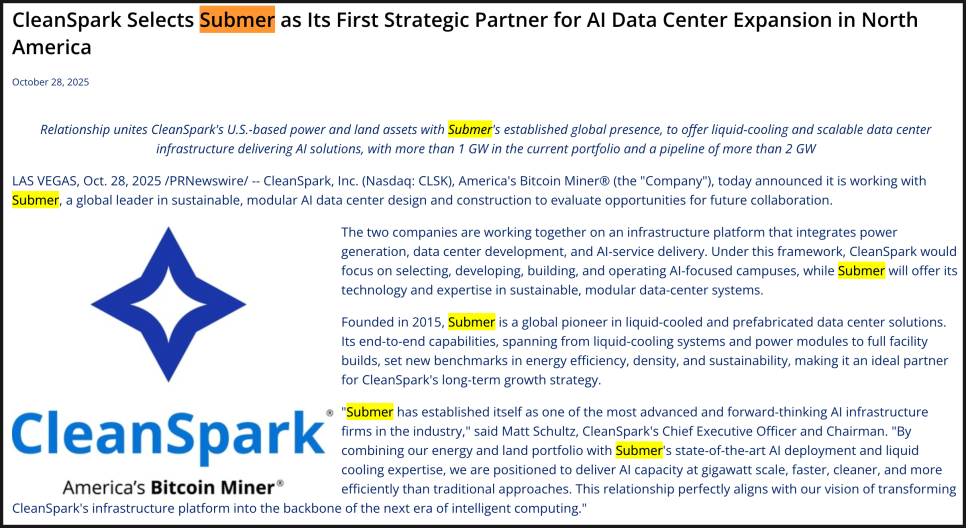 그런 의미에서 클린스파크는 최근 글로벌 액체냉각 기업 서브머(Submer)와 협력해, 데이터센터 구성 요소를 공장에서 모듈 형태로 생산해 설치하는 방식으로 효율성을 높이겠다는 전략을 제시했습니다. 이는 기존 데이터센터 건설 방식보다 비용과 시간 면에서 유리할 수 있습니다.