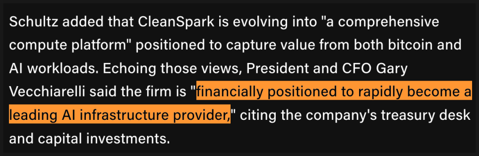 바로 이런 맥락에서 CFO 게리 베키아렐리(Gary Vecchiarelli) 역시 “클린스파크는 재무적으로 매우 빠른 속도로 AI 인프라 기업로 전환할 준비가 되어 있다”고 설명했습니다. 회사가 보유 비트코인을 활용하는 방식도 단순 보유에서 벗어나 적극적인 운용으로 바뀌고 있고, 이를 통해 실질적인 현금 흐름을 만들어내는 구조를 강화했다는 거죠.