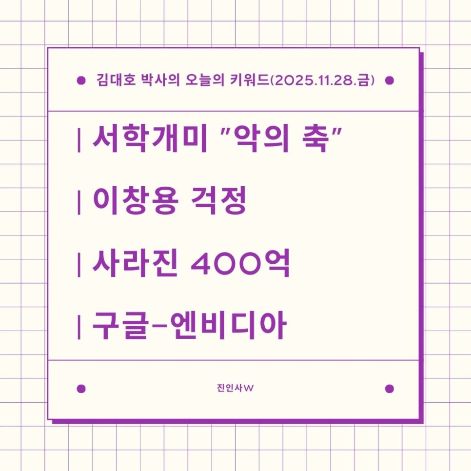 #김대호박사의오늘의키워드 #sbsbiz채널 #경제흐름읽기 #시간은소중히쓰자 #주식투자 #부동산투자 #진인사대천명 #서학개미악의축 #이창용걱정 #사라진400억 #구글엔비디아
