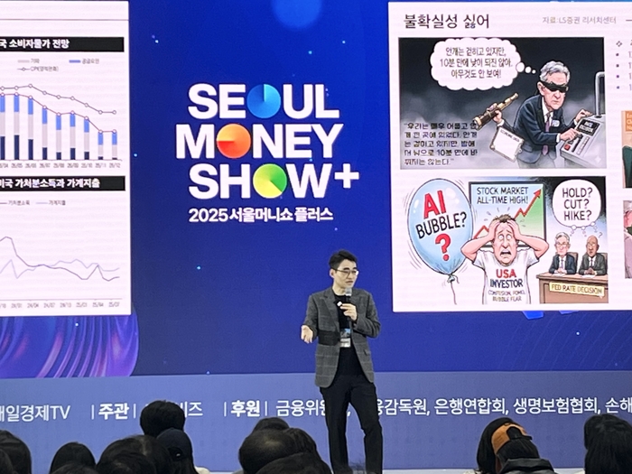 27일 서울 코엑스마곡에서 열린 ‘2025 서울머니쇼 플러스(+)’에서 ‘2026년 대한민국 증시를 뒤집어 놓을 주인공은?’이라는 주제로 강연에 나선 염승환 LS증권 리테일사업부 이사는 “코스피는 여전히 싸다”며 이같이 말했음