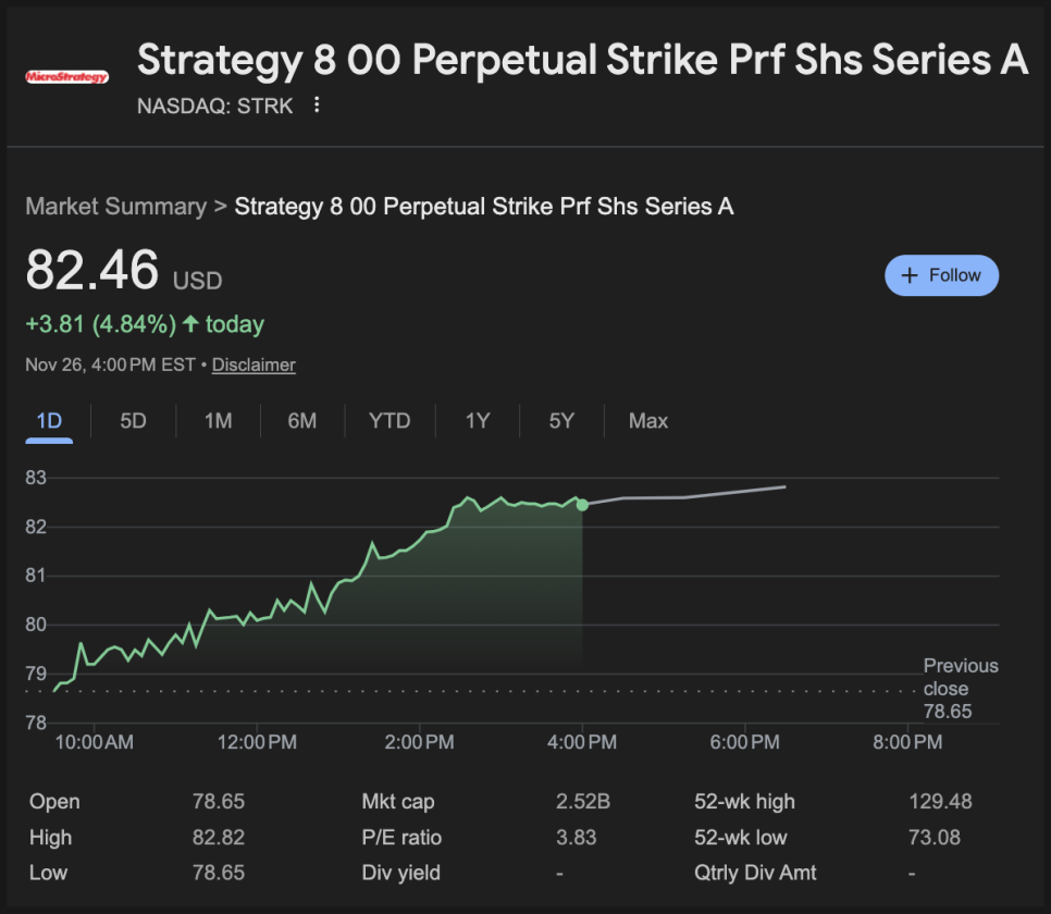 최근 시장 가격을 보면 STRK는 약 82달러,