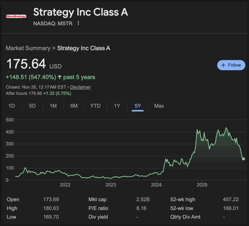 해당 글은 비트코인 가격이 한 달 만에 35퍼센트나 떨어지면서, 마이클 세일러(Michael Saylor)가 이끄는 스트래티지(Strategy)에 대한 걱정이 다시 크게 늘고 있다는 말로 시작하는데요. 대부분의 나스닥 기업 입장에서는 그냥 시장 변동성 정도로 넘길 수 있는 조정이지만, 비트코인 가격 상승을 전제로 회사 전략 전체를 설계하고, 주주들도 그 기대를 기반으로 주식을 모아온 스트래티지에게는 상황이 단순하지 않다는 거죠.