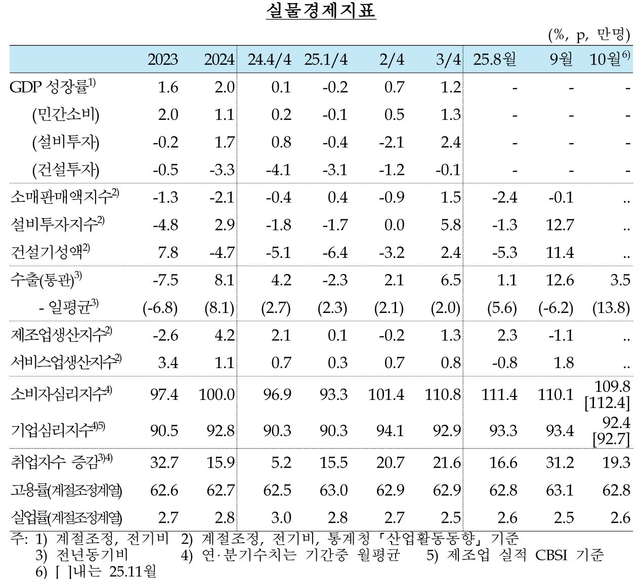 ㅇ 앞으로 내수가 소비를 중심으로 회복세를 지속하는 가운데 수출은 증가율이 다소 둔화되겠지만 반도체 경기 호조, 한‧미 관세협상 타결 등으로 예상보다 양호한 흐름을 이어갈 전망이다.