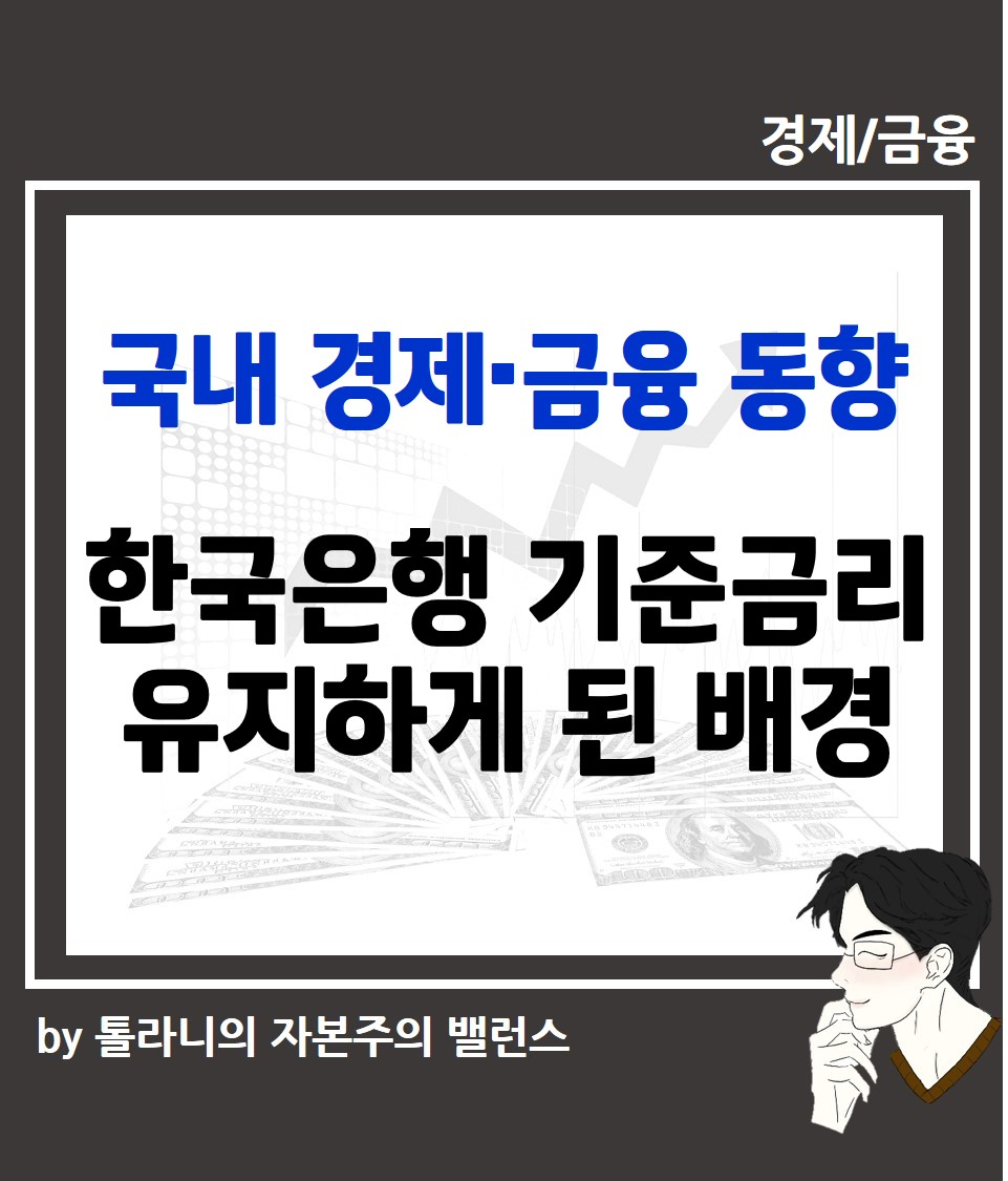현재 한국은행이 기준금리를 유지하게 된 배경 관련하여 한국은행 보도자료를 통해 좀 더 자세히 알아보도록 하겠습니다.