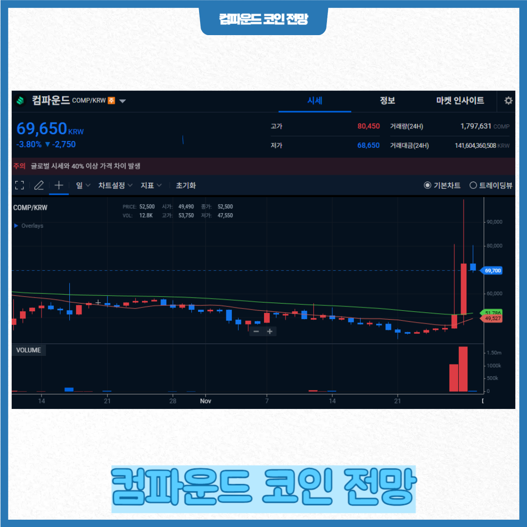 단기 시세만 보는 코인보다는 생태계 구조가 탄탄한 디파이 토큰을 선호한다면 컴파운드는 충분히 지켜볼 만한 프로젝트입니다.