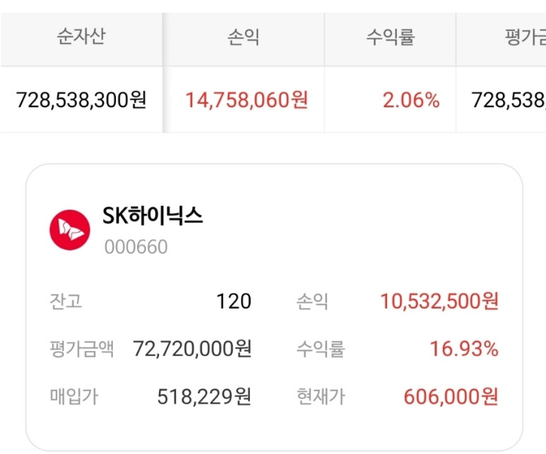 현재 국내 주식은 총 7억 원 정도 투자중입니다.