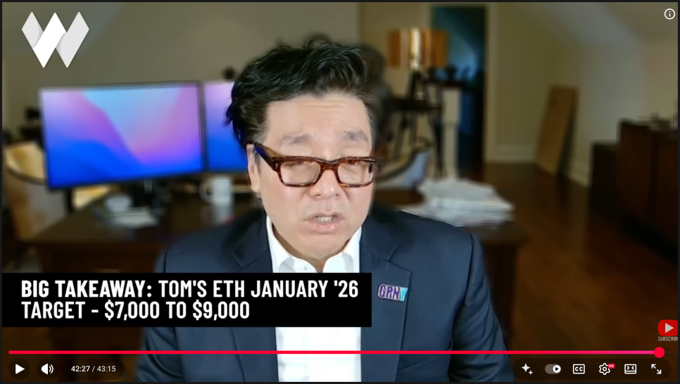 최근 몇 주 동안 비트코인과 이더리움을 포함한 대부분의 암호화폐가 큰 하락을 겪은 와중에도 톰 리는 비교적 낙관적인 전망을 유지하고 있습니다. 최근 자신이 운영하는 회사 팟캐스트에서는 이더리움이 2천5백 달러 언저리에서 바닥을 만들고, 2026년 1월 말까지 7천 달러에서 9천 달러 사이로 올라갈 가능성이 있다고 말했습니다.