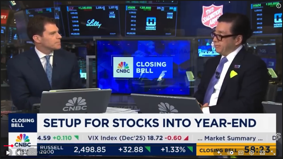 진행자가 “그렇다면 올해 S&P500이 7,000까지 갈 수 있느냐”고 묻자, 톰 리는 올해 시장이 “5년 치 사건을 1년에 압축해 겪은 해”였다고 말했습니다. 급락, 관세 충격, 정책 리스크 등이 한꺼번에 몰리면서 상반기 7,000포인트 시나리오는 무너졌지만, 이후 낙폭을 거의 되돌린 것을 보면 시장의 회복력은 의외로 매우 강했다고 설명했습니다. 그는 내년에도 정책 관련 충격 때문에 20퍼센트급 하락이 다시 나올 수는 있지만, 올해와 비슷하게 결국 회복할 가능성이 높다고 내다봤습니다.