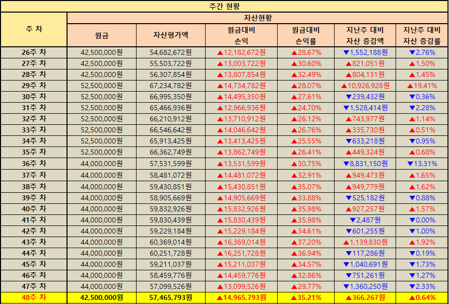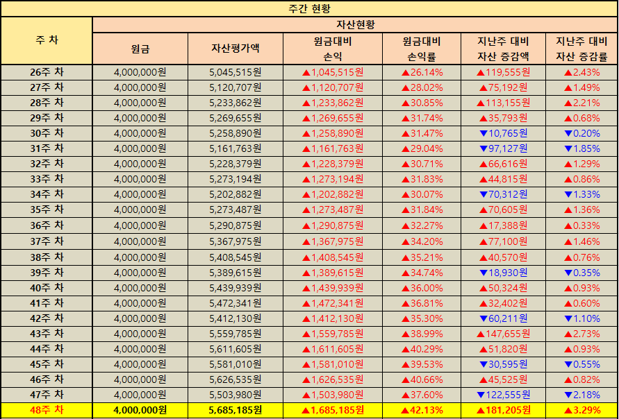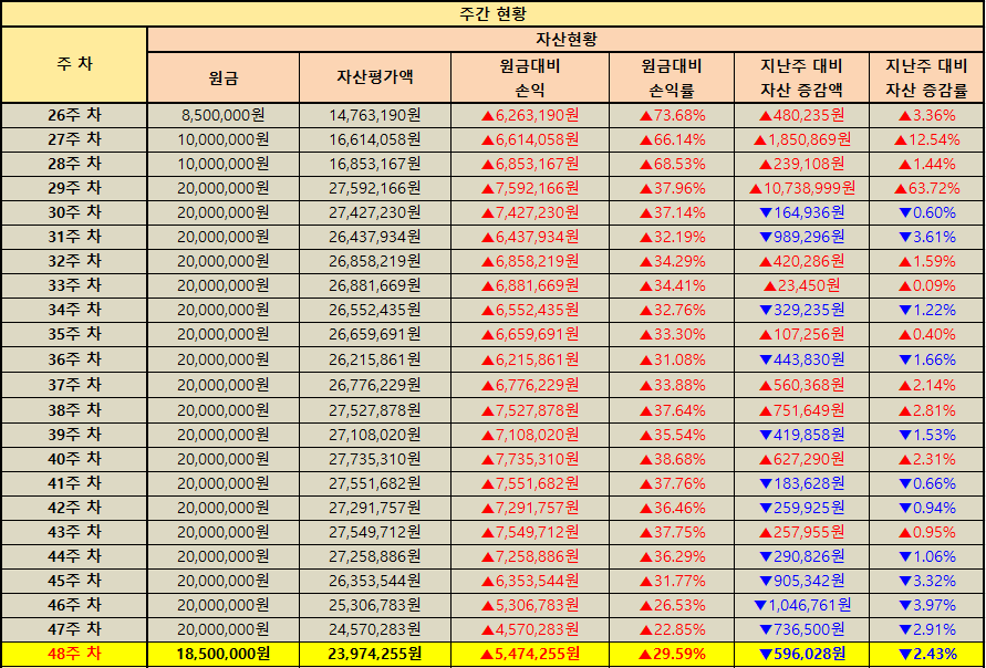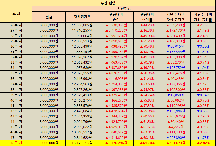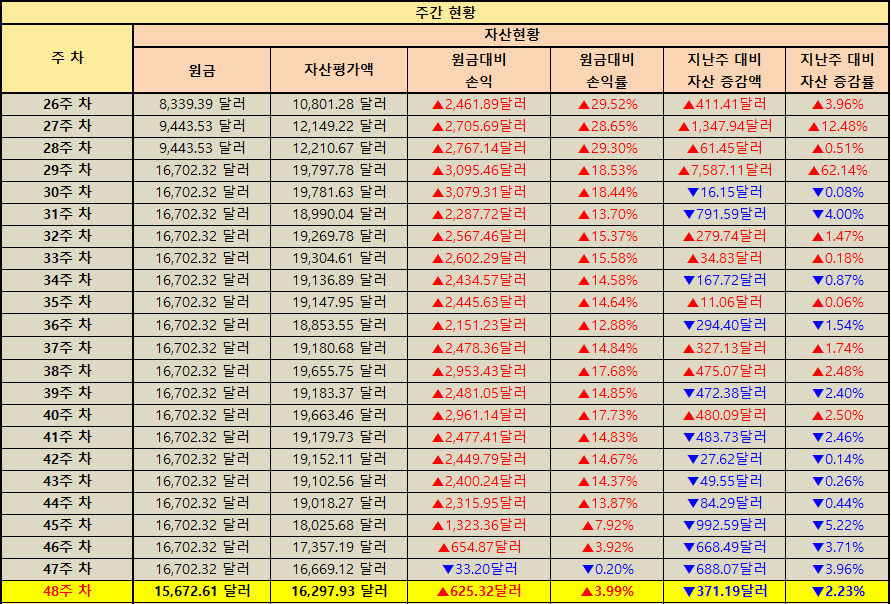 지난주 대비 자산 증감 현황