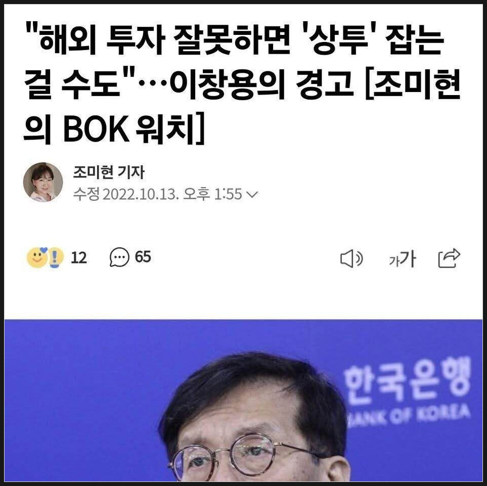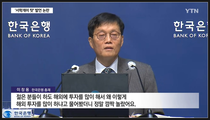 왜냐, 최근 한국은행 총재가 해외 주식 투자자들은 디스한 사건에 대한 내용이기 때문이죠.