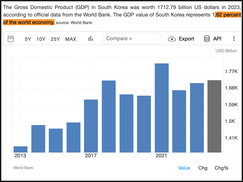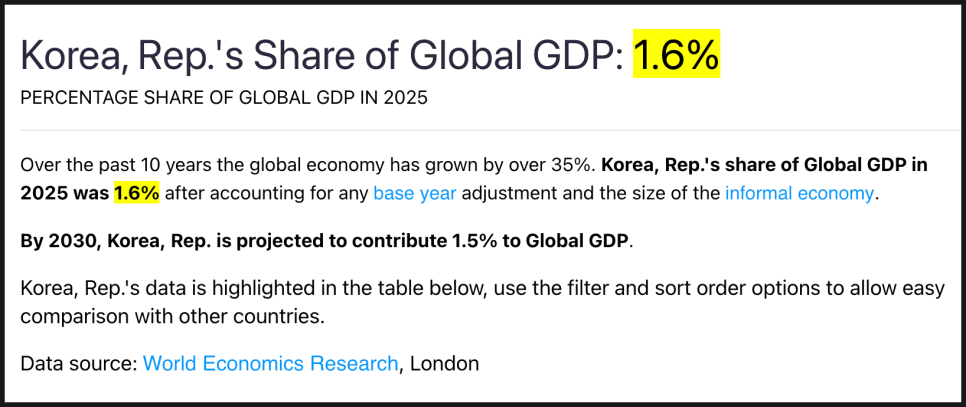 반면 한국은 세계 경제에서 차지하는 비중이 약 1.6%에 불과합니다. 세계 경제의 1.6%만 바라보고 투자를 한다는 것은 세계의 98.4%를 포기하는 것과 비슷한 의미가 됩니다. 이 상황에서 미국 주식을 하는 이유를 ‘쿨해 보여서’라고 말할 수 있을까요?